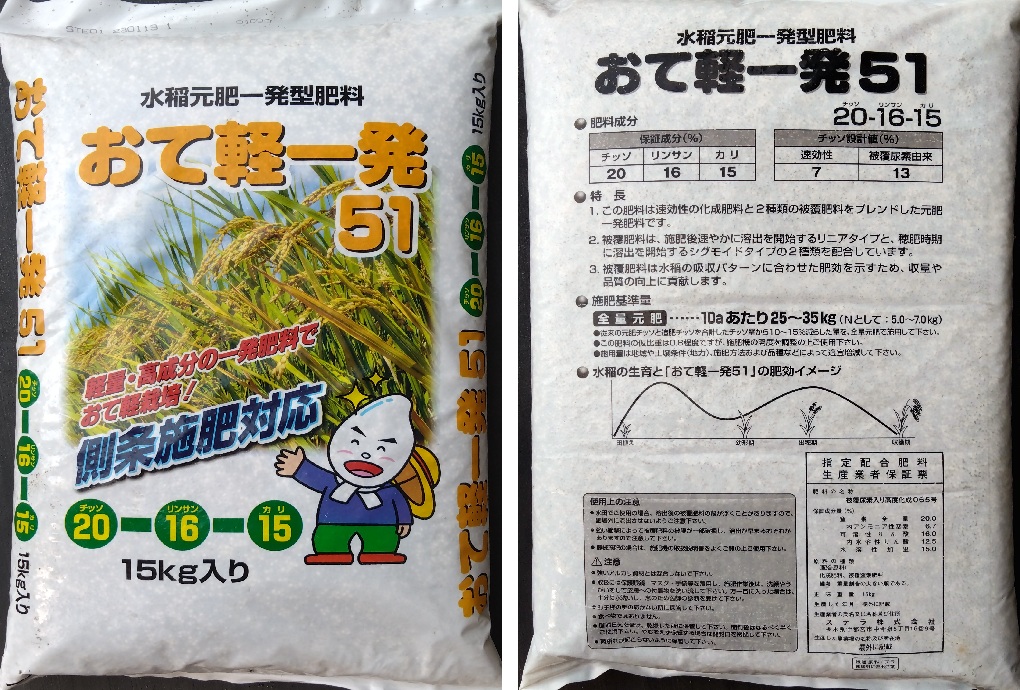 2.被覆肥料は、施肥後速やかに溶出を開始するリニアタイプと穂肥時期に溶出を開始するジグモイドタイプの2種類を配合してます。