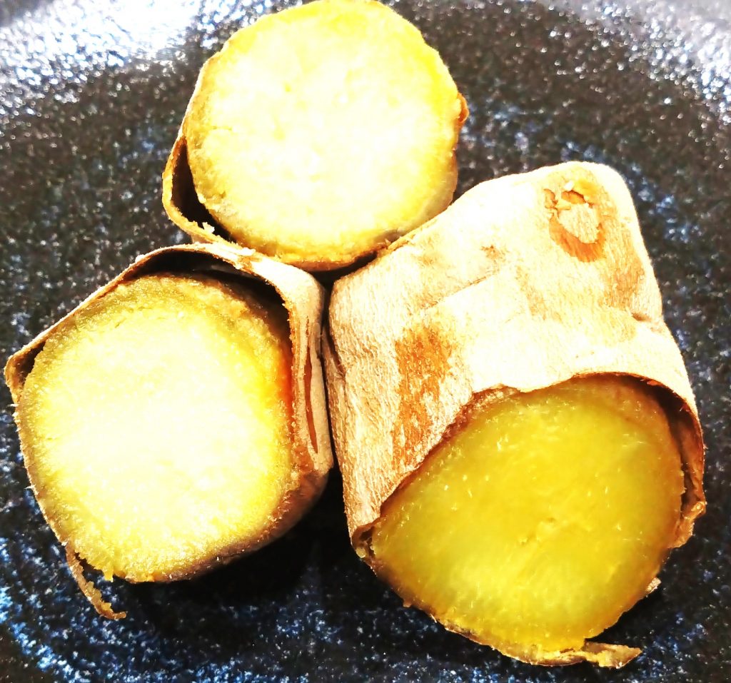 白い皮が特徴の、ねっとり甘くて、おいしい焼き芋が出来あがりました。